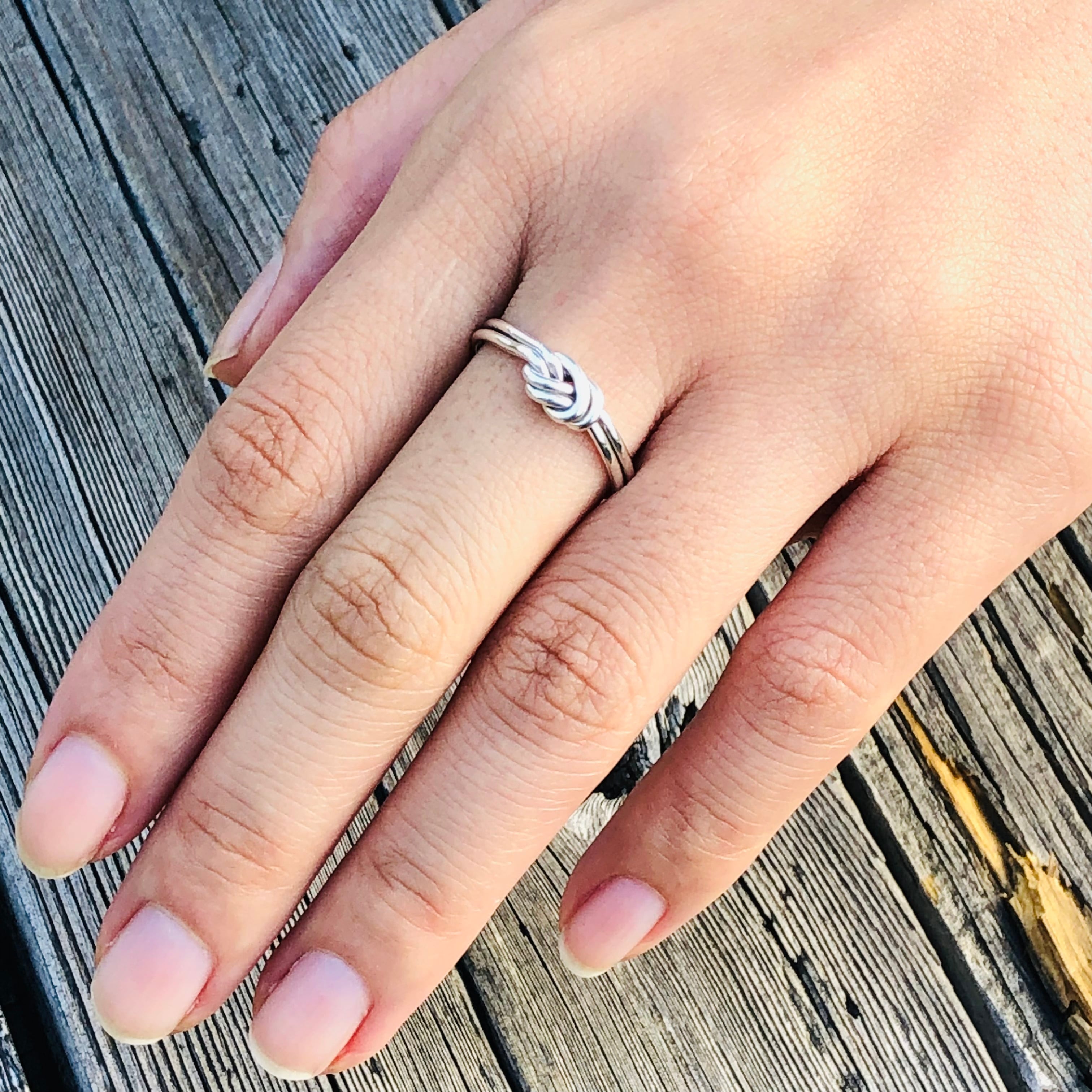 1.2mm幅の素材を2本重ねて結びました。1本で付けても存在感のあるリングです。